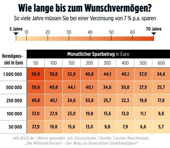 Imagina una vida laboral de 8 horas al día, 5 días a la semana. Sin horas extra, vacaciones ni festivos, son unos 250 días al año. En 45 años laborales, eso suma 11.250 días o 90.000 horas de trabajo. De este enorme tesoro de tiempo, al menos un 10% debería dedicarse a crear tu propio tesoro financiero en tu cuenta del futuro: ¡9.000 horas trabajando para ti! Por eso, dos días de salario al mes deberían ser exclusivamente para tu propio beneficio.